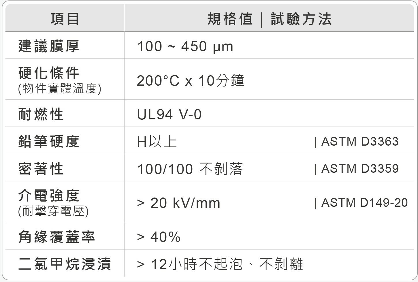本系列產品使用特殊環氧樹脂加工生產而成,其漆膜具有優良的電絕緣性、防腐性和密著性、角緣覆蓋性佳且適用各類印刷方式、電子元件和電氣設備。